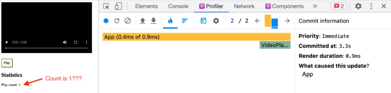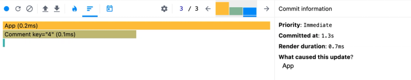 Also notice that we now have 2 Comment components showing up in the flame graph, which represent our filteredComments derived state.